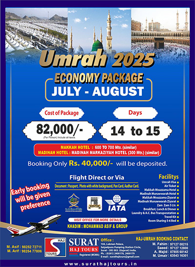 Surat Haj Tours is a trusted name in Hajj and Umrah pilgrimage services, proudly serving the community since 2009. With over 30 years of collective experience in organizing and managing sacred journeys, we are a licensed Hajj operator dedicated to offering safe, comfortable, and spiritually fulfilling pilgrimage experiences.